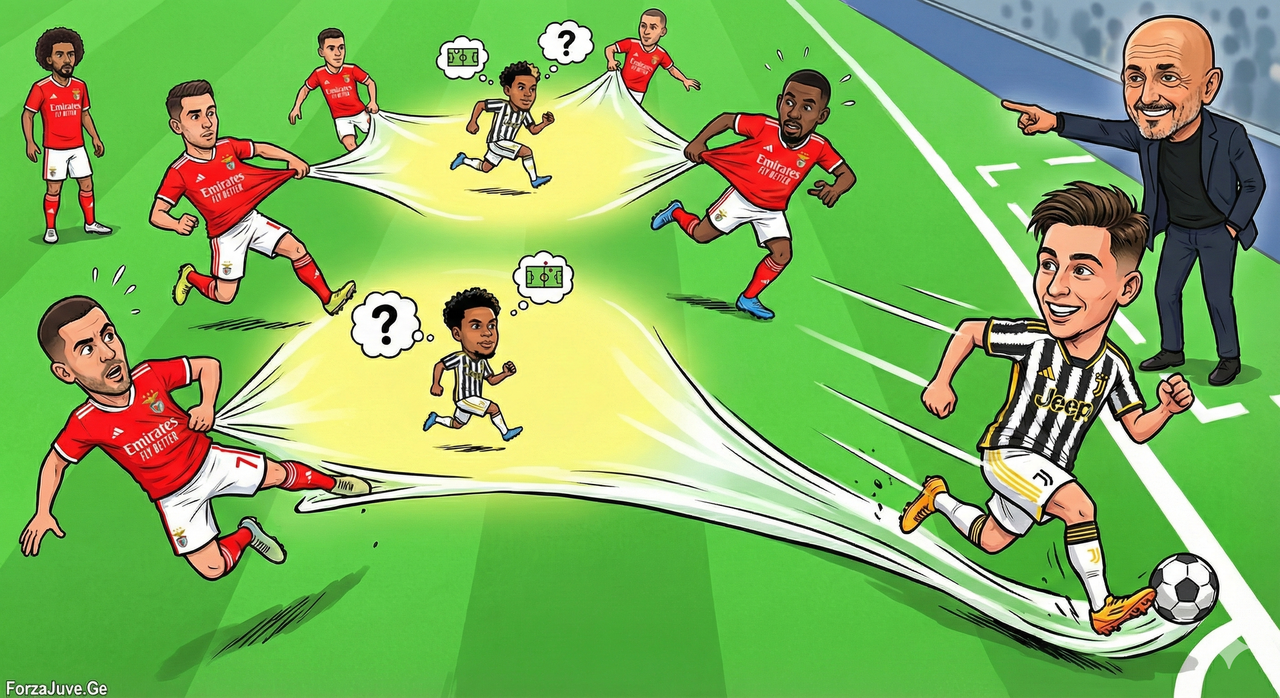 მეორე ტაიმში სპალეტიმ გამოიყენა კლასიკური „გადატვირთვის“ (Overload to Isolate) ტაქტიკა. „იუვენტუსი“ განზრახ აგროვებდა ბურთს და მოთამაშეებს მარცხენა ფლანგზე (ილდიზის და კამბიასოს ზონაში), რითაც „ბენფიკას“ მთელი დაცვითი ბლოკი იქით გადაჰყავდა.